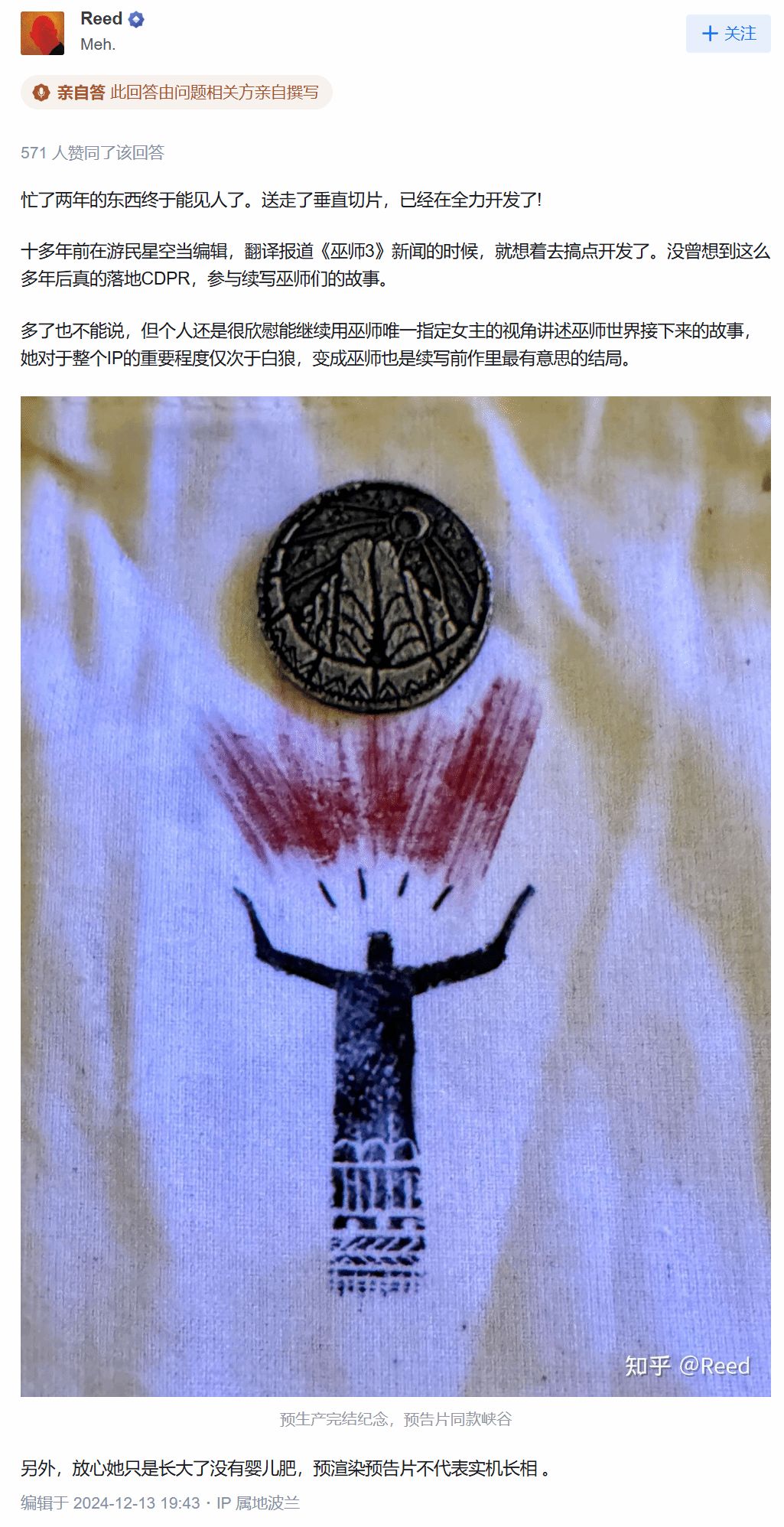 此外,《巫师4》的开发人员 Reed 在国内问答网站中对此事作出回应,澄清了希里的外貌变化。他表示:“放心,她只是长大了没有婴儿肥,预渲染预告片不代表实机长相。”