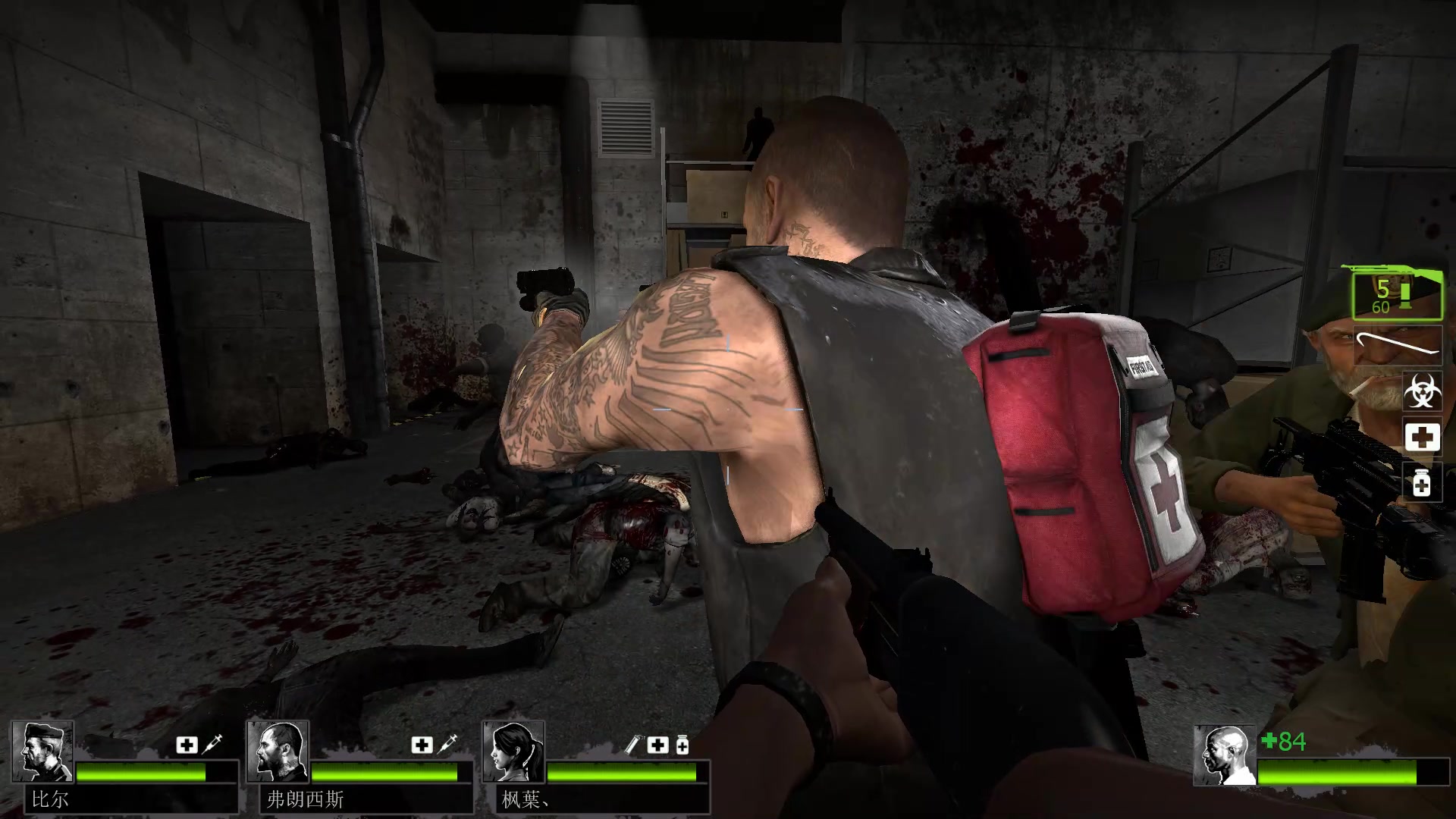 在单机模式下,玩家将扮演四名幸存者之一,与电脑控制的其他三名幸存者一起抗击无情的僵尸浪潮。这四名角色分别是教练、罗切尔、艾利斯和尼克,每个角色都有自己的背景故事和性格特点。