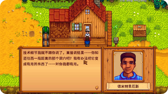 德米特里厄斯是一个充满好奇心的人,他总是对星露谷的生态环境保持着浓厚的兴趣。玩家可以看到他进行各种实验,探测当地的环境和生态系统。正是这种对自然的爱护以及科学的热情,使得德米特里厄斯在镇上享有很高的声誉。