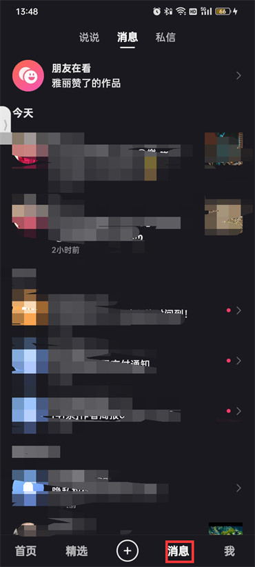 1.首先打开快手软件,在快手的页面中点击右下方的【消息】;