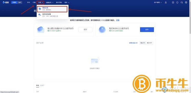 1.首先打开欧交所(https://www.欧意易.icu/),登录进入后,点击上方的交易,选择基础交易。