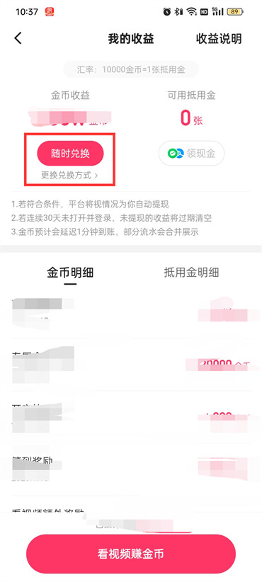 3.点击过后在我的收益页面中点击【兑换方式】;
