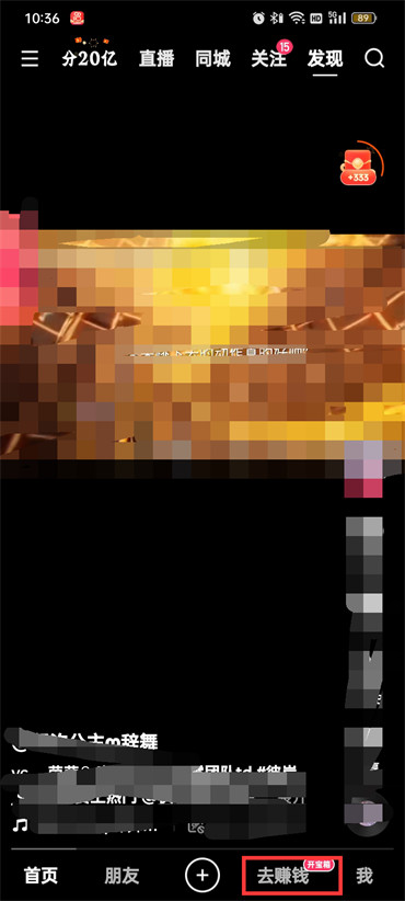 1.首先打开快手极速版软件,然后在快手极速版的页面中点击右下方的【去赚钱】;