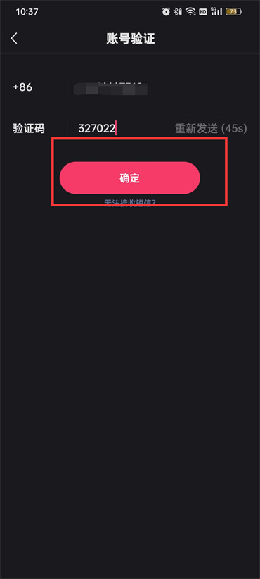 5.点击过后会来到账号验证的页面,在该页面中获取验证码输入之后点击【确定】;