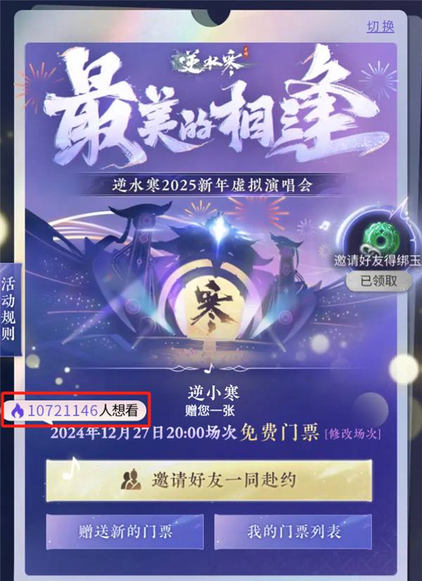 《逆水寒》手游无疑做了好事一件,演唱会距现在已经过去了三天,但还是有许多玩家忙于生计而错过了时间,所以《逆水寒》手游官方最后在31号之际,举办了跨年场次,邀请各位玩家相逢于最美江湖。