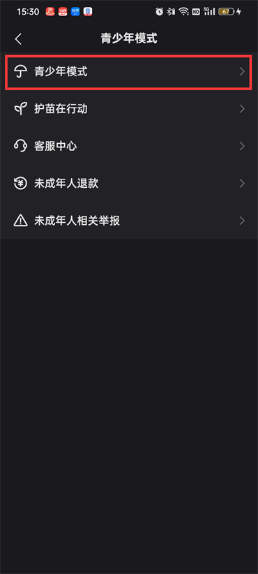 2.然后在当前的页面点击【青少年模式】;