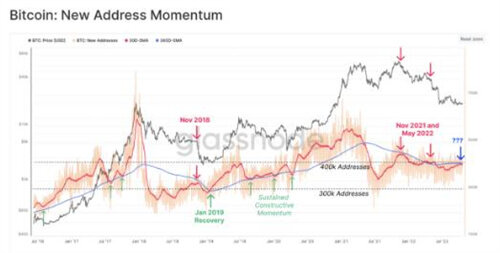 年新的非零地址增长停滞,随后是比特币价格下跌,直到2019 年 1 月,该指标开始增加。