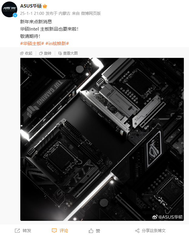 华硕将在CES 2025上推出B860和H810系列的英特尔主板