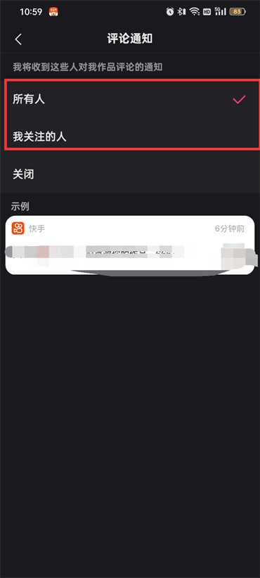 5.最后点击过评论之后来到该页面点击【所有人】或者【我关注的人】即可开启通知;