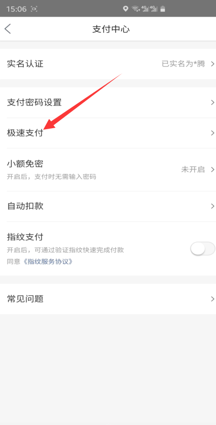 3、找到并点击“极速支付”。