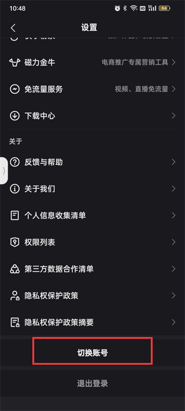 3.进入到设置的页面之后划到最下面点击【切换账号】即可;