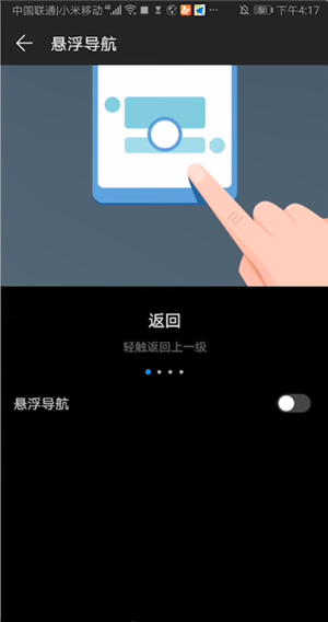 4、选择悬浮导航时,只需轻触悬浮点即可返回上一级。选择自己需要的方式即可成功设置导航键了。