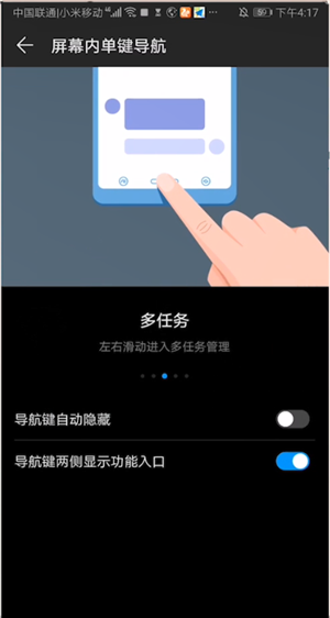 3、选择屏幕内三键导航和屏幕内单键导航时,只需轻触返回按键,即可返回上一级;
