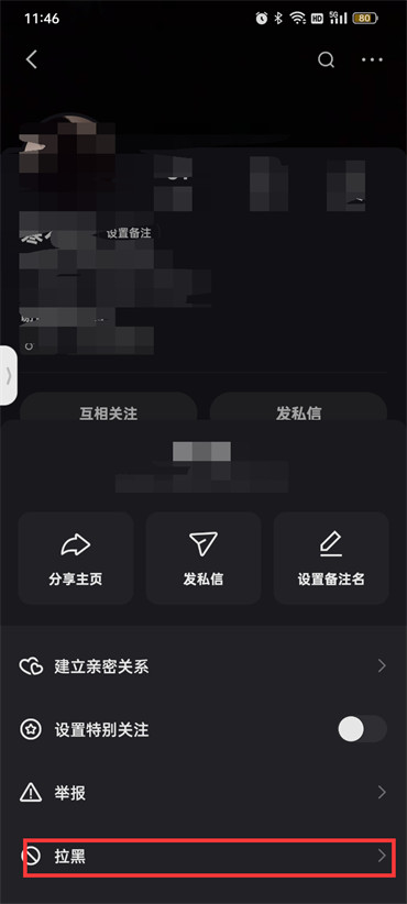 4..最后在页面下方弹出来的选项中点击【拉黑】即可;