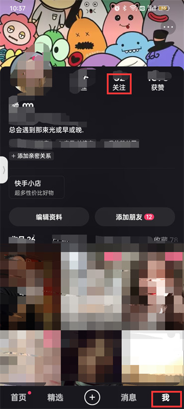 1.首先打开快手软件,来到快手页面之后点击右下角的【我】,进入到我的页面之后点击【关注】;