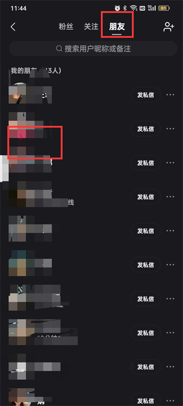 2.在关注页面中点击【朋友】,然后在朋友列表中找到你要屏蔽的好友点击好友的【头像】;