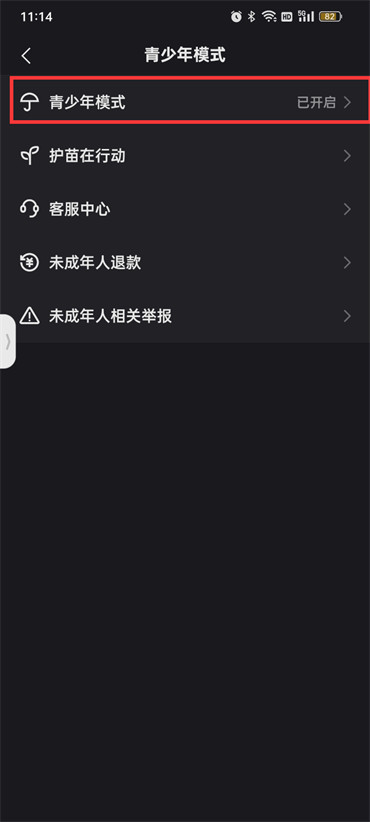 3.进入到青少年模式的页面之后在点击【青少年模式】;