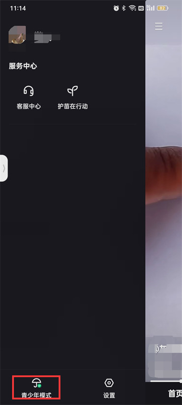 2.然后在当前页面点击左下角的【青少年模式】;