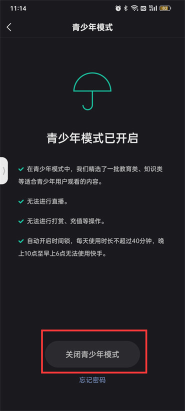 快手怎么退出青少年模式