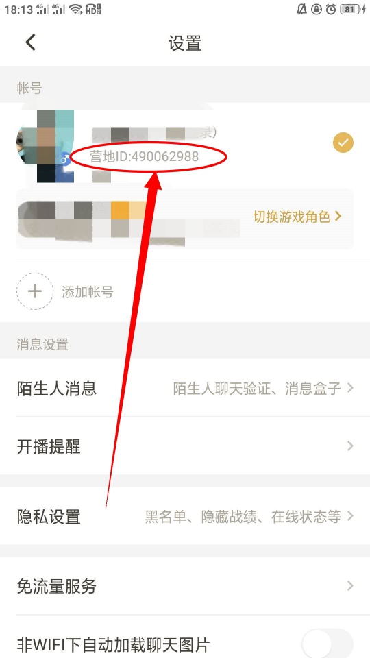 2、在设置页面,账号名字下面,就是营地ID了,只不过营地ID跟游戏账号ID不是同一个。