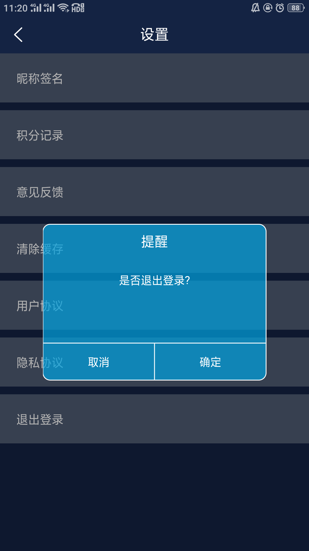 4、在设置界面找到最下方的退出登录,点击后会跳出弹窗,点击确定即可。