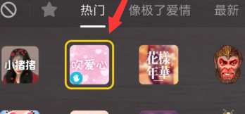 需要用手在嘴前面做出比心动作,做出之后,嘴前面就会出现一个大的心,然后吹开,就变成好多小心心。