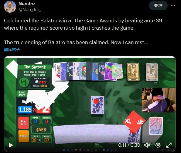 今年的最佳独立游戏作品《小丑牌(Balatro)》几乎没有人没玩过。作为热门扑克肉鸽游戏,非常适合在闲暇的碎片时间中玩一会。然而当游戏进行到一定程度时,就会进入无尽模式,想要通关非常困难。