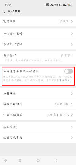 4、在支付管理页面找到【允许通过手机号向我转账】功能,开启右侧的开关;