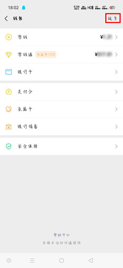 3、选择右上角的【账单】,进入账单内查看所有的交易记录;