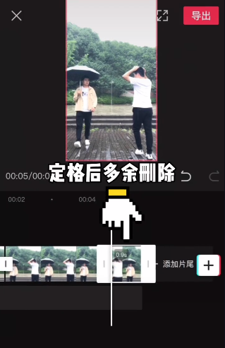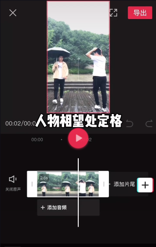 7.当人物相望的时候让这个视频定格,切除后面的部分并在此处选择一个动画以和后面的近景视频有一个很好的过渡效果,然后点击右侧的 号导入一个近景视频;