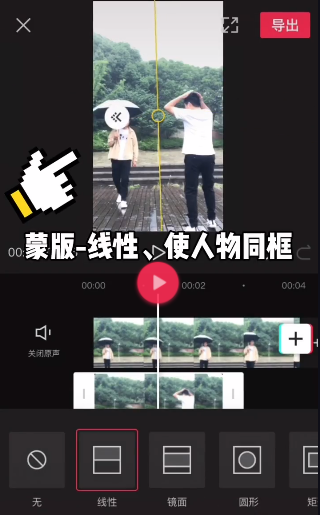 5.然后选择【蒙板】-【线性】让两个视频合成为1个,这样人物就会同框了,看起来毫无违和感;