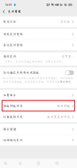 3、在支付管理中找到【转账到账时间】,可以看到当前转账到账是实时到账的;