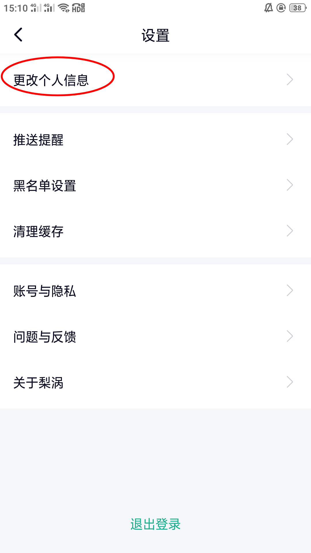 3、在设置界面,找到更改个人信息,点击进入。
