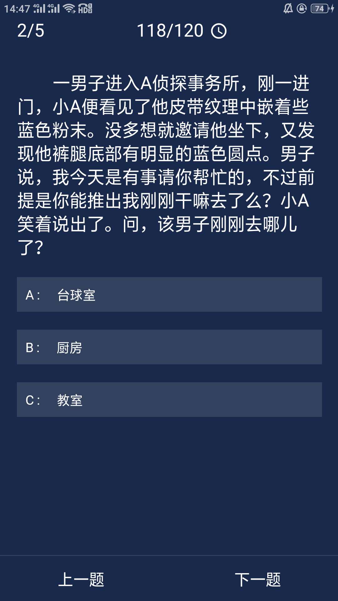 正确答案:A(台球室)