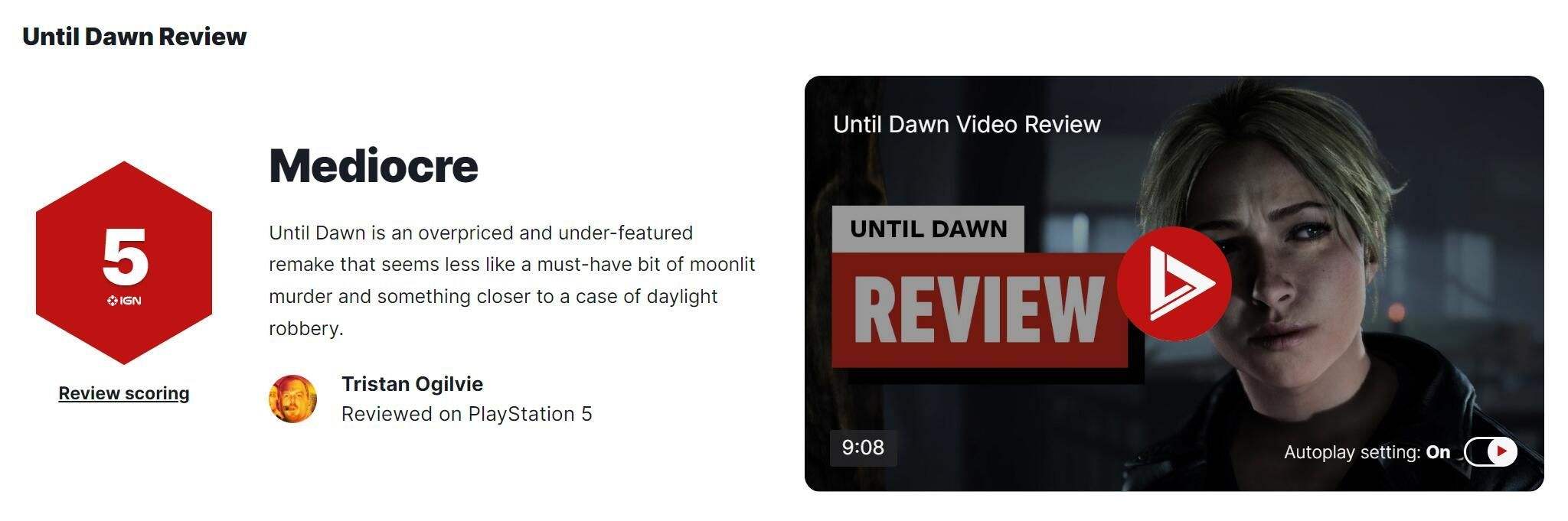 需要注意的是,今年10月,索尼发行了《直到黎明:复刻版》。但该作品上线后,在销量与口碑方面均未达预期,其首日在 Steam 平台的在线人数最高只有2600人。并且,IGN也只给了他5分评价,声称该做是一款功能不足的复刻游戏,且定价偏高,存在商业利益过度诉求之嫌。