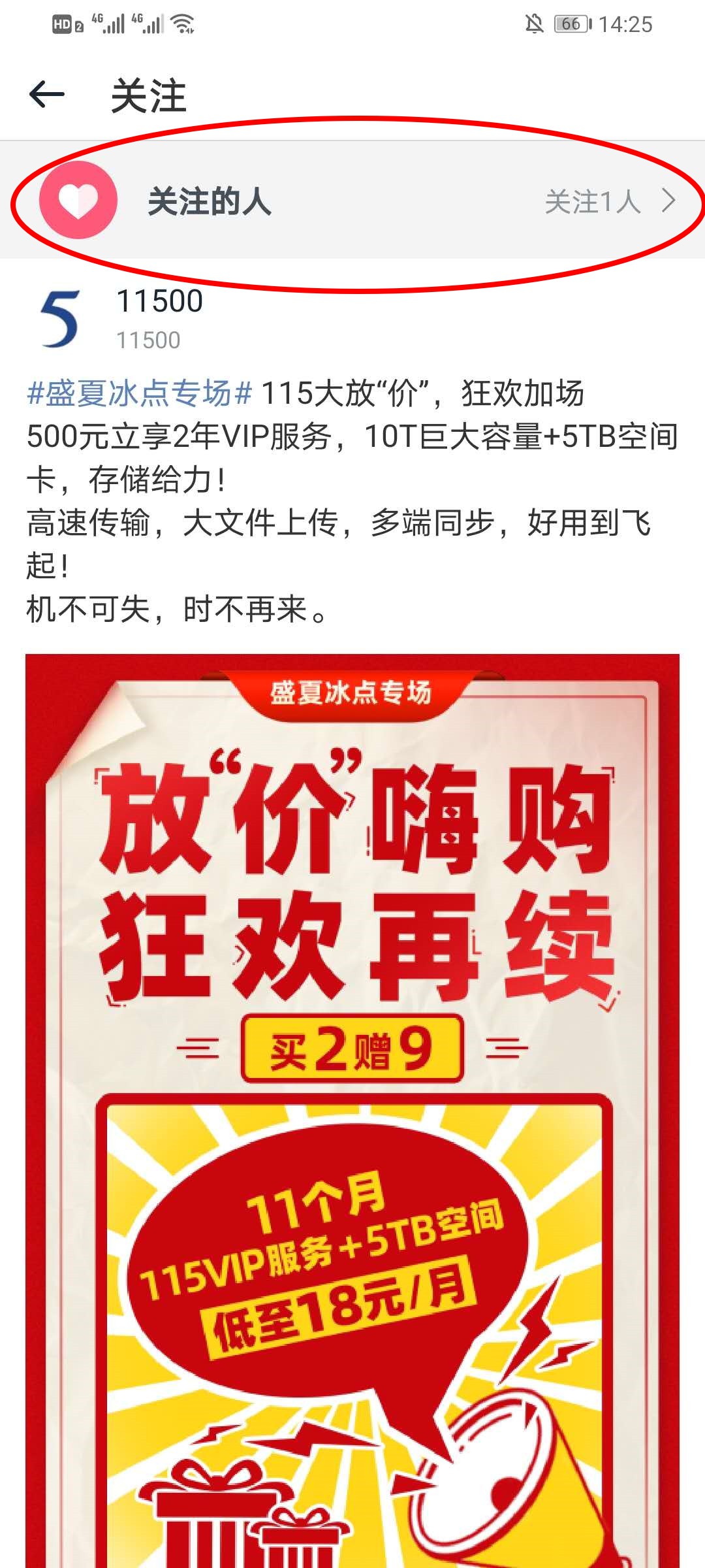 115网盘怎么取消关注的人