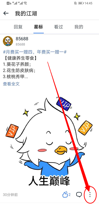 4、在星标界面点击收藏的文章的右下方的省略号。