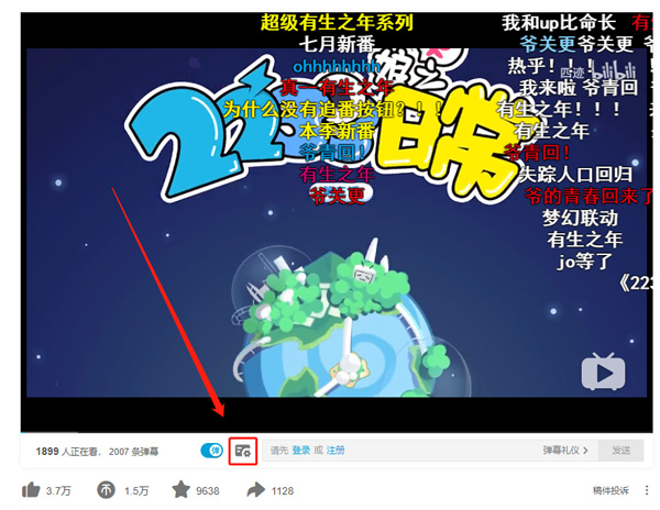 5.使用电脑版观看视频或者直播的用户,可以在视频播放页面,找到【弹幕设置】按钮;