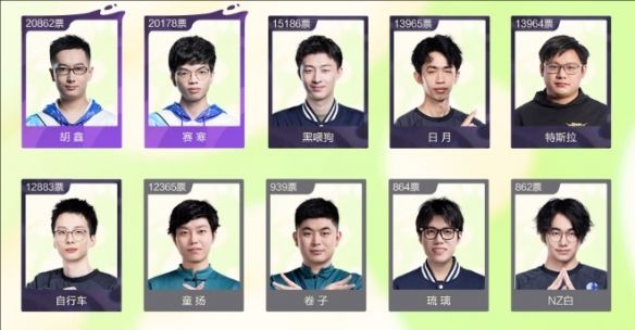 3、胡鑫:20862票、赛寒:20178票、黑喂狗:15186票、日月:13965票、特斯拉:13964票。