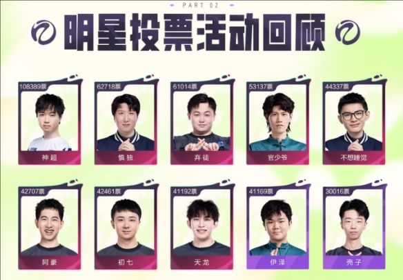 2、不想睡觉:44337票、阿豪:42707票、初七:42461票、天龙:41192票、伊泽:41169票、壳子:30016票。
