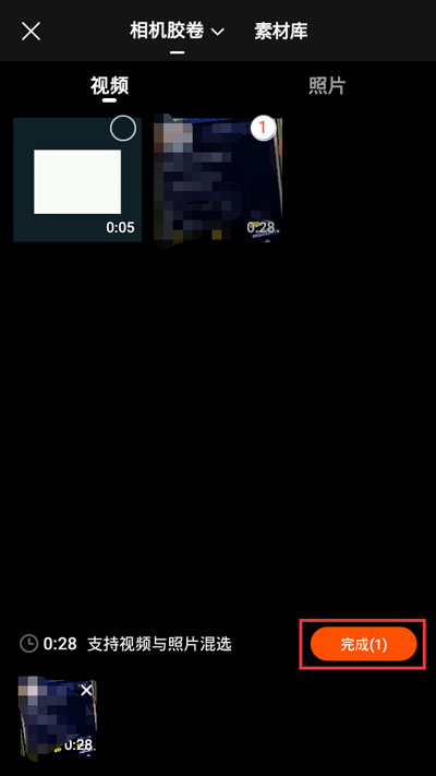 2.选择一个视频,这个视频可以随便选,选择完成后点击【完成】;