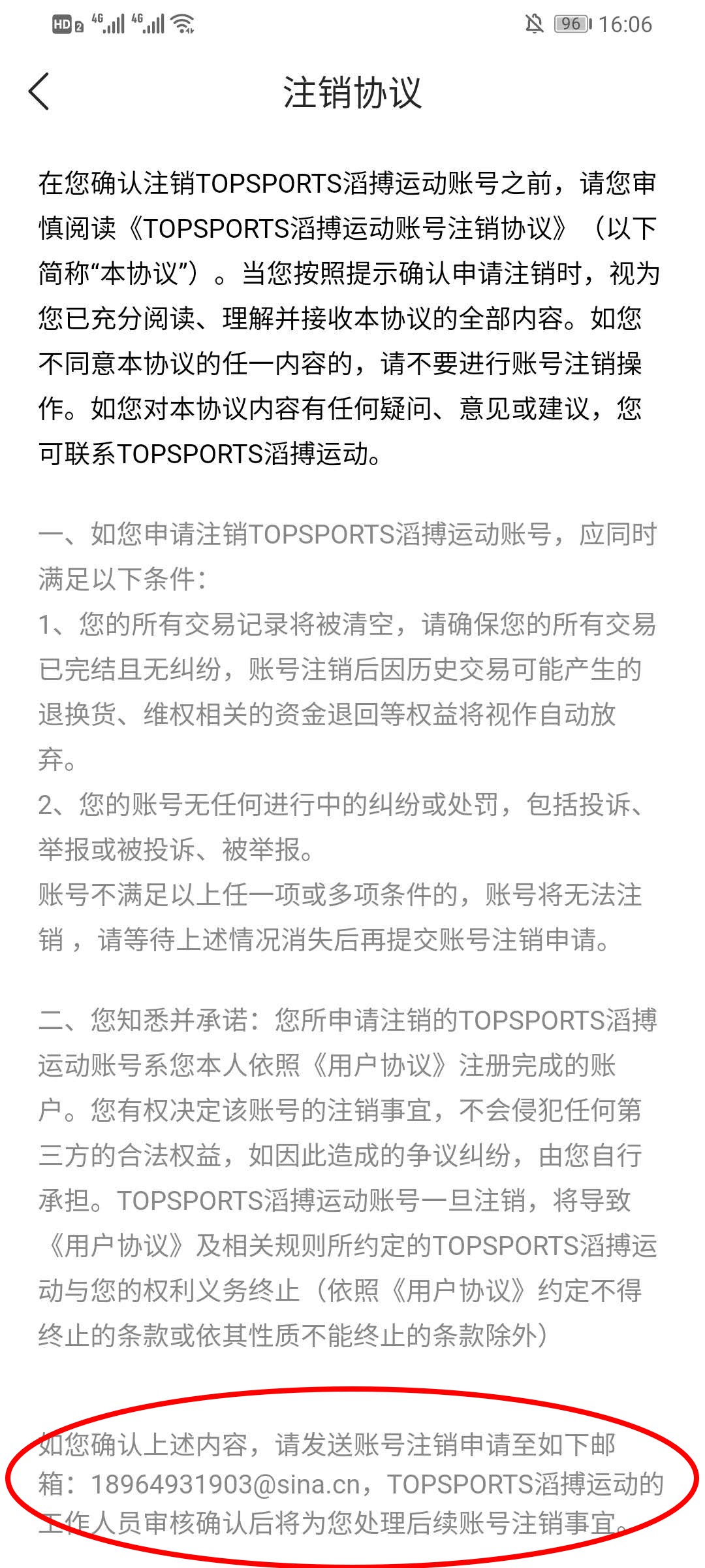 4、在关于滔博运动APP界面,点击注销协议,进入查看。