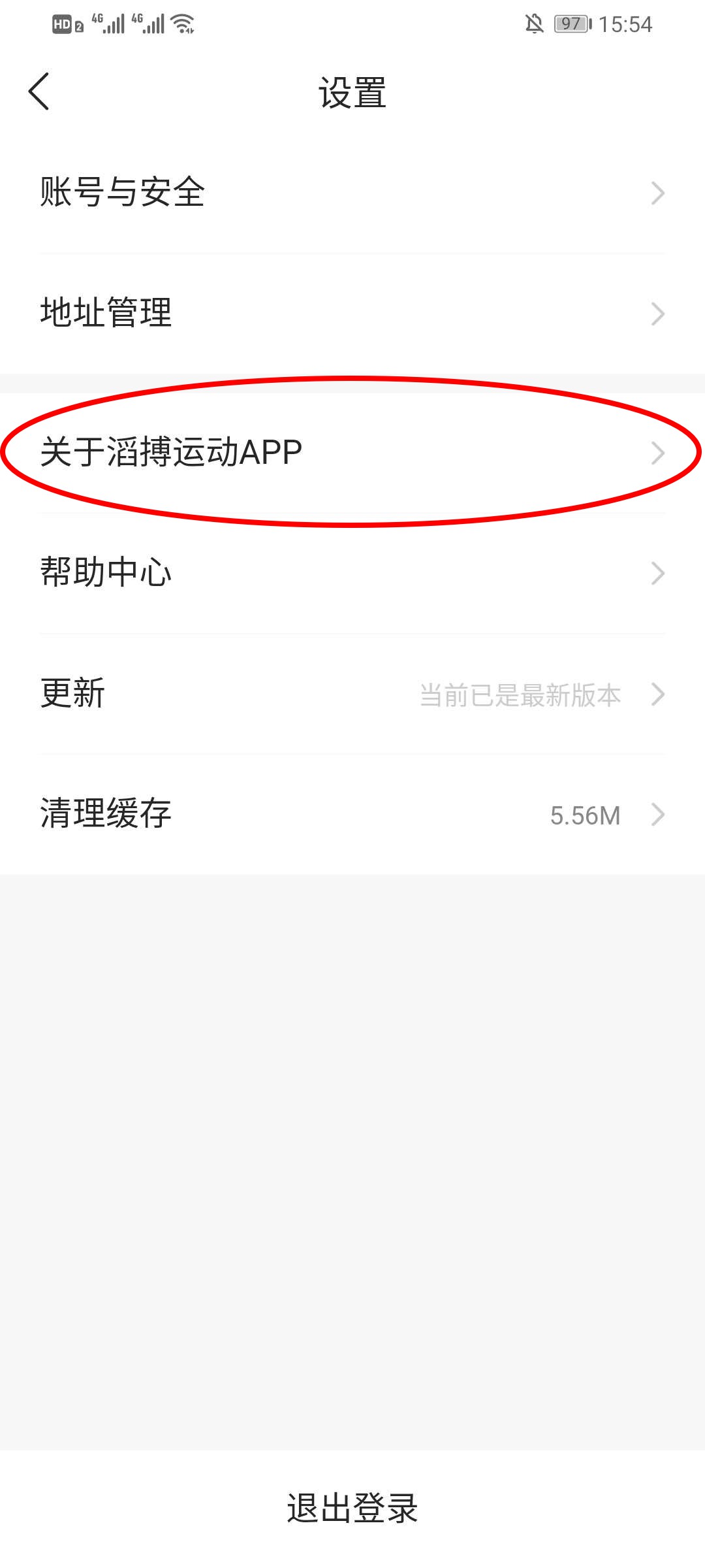 3、在设置界面,点击下方的关于滔博运动APP,点击进入滔博运动APP。