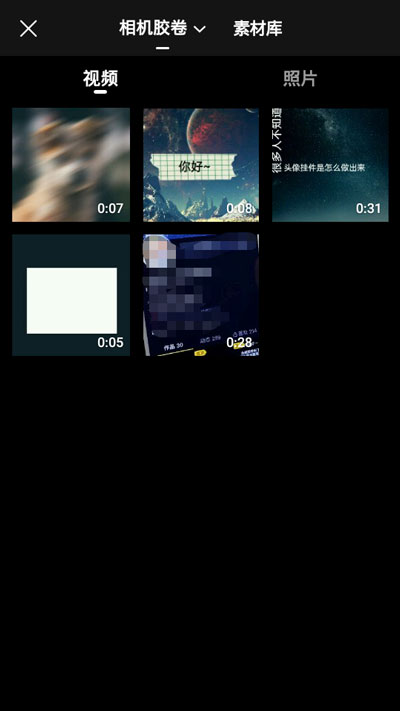 4.继续选择一段视频,该视频为最上方显示的一个视频,点击即可选择视频;