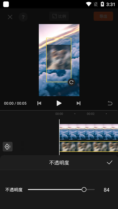 7.【不透明】则是设置最上方画的透明度,合适的透明度会让画中画看起来很自然;