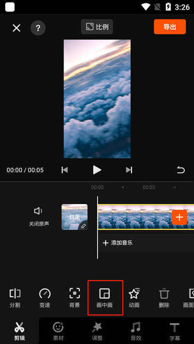 3.然后在【剪辑】中点击【画中画】功能;