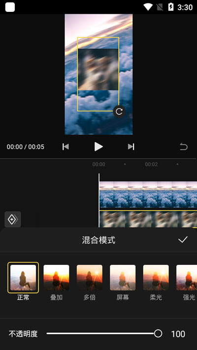 6.点击【混合模式】可以为视频添加滤镜,改变最上方的视频的模式;