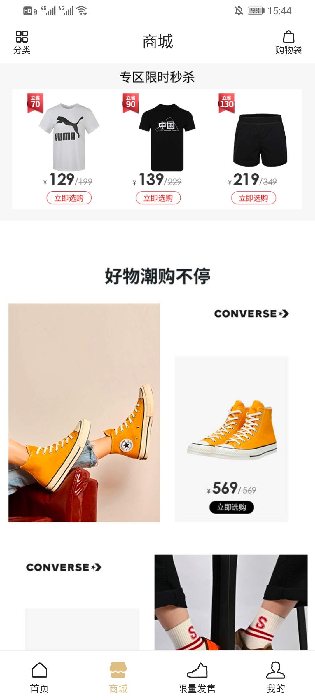 1、打开滔博运动APP,在首页点击下方的商城,进入商城界面。