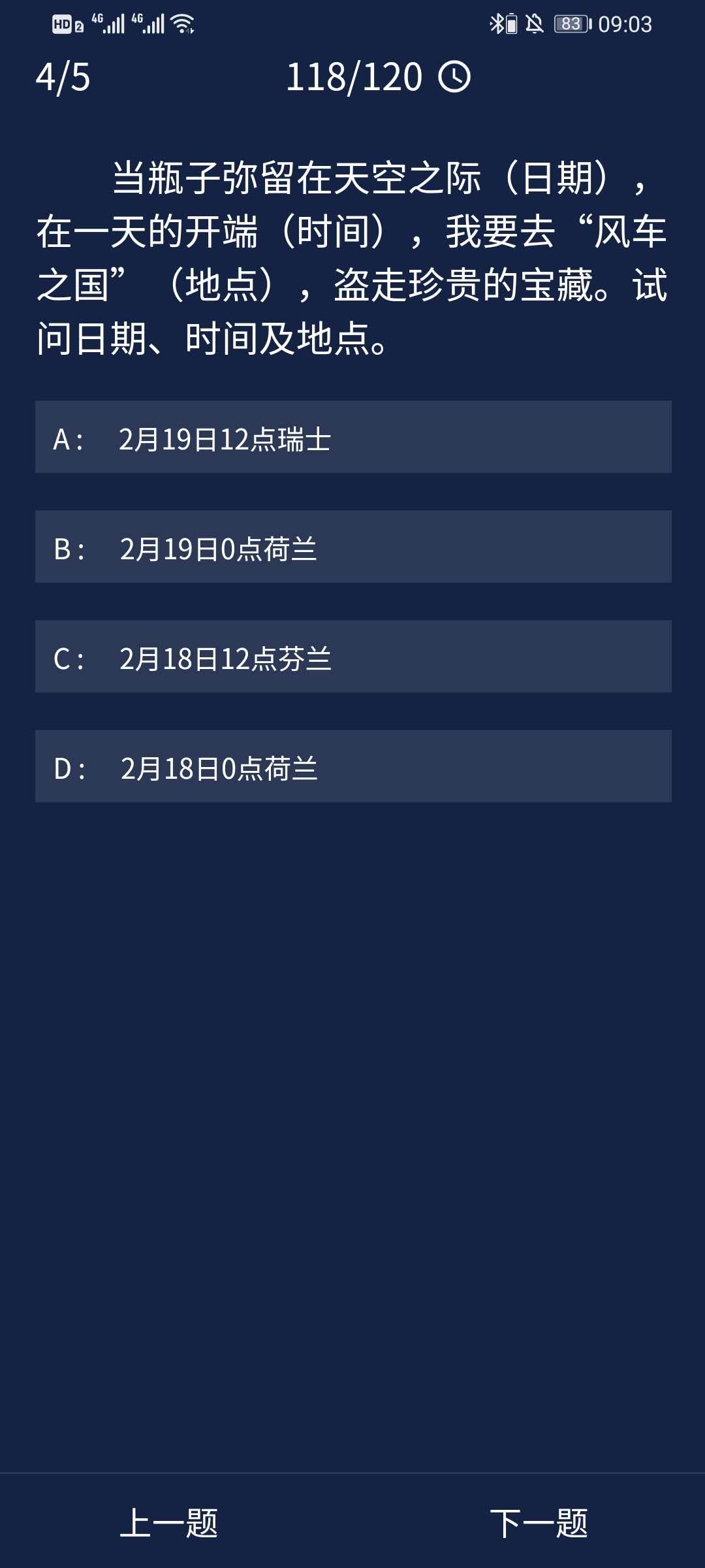 正确答案:D(2月18日0点荷兰)