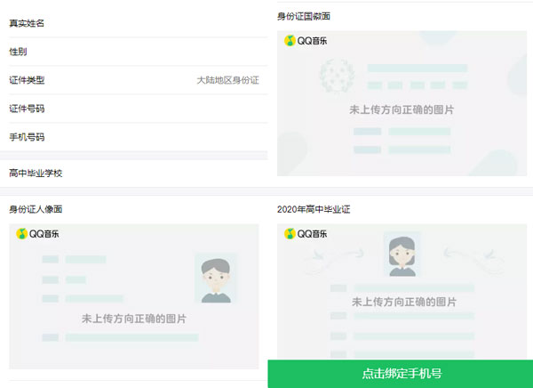 · 活动期间,正确填写个人信息 *,上传 “2020 年高中毕业证”照片,身份信息审核将在 30 个工作日内完成。若审核通过,QQ 音乐 VIP 年卡将会在 48 小时内自动到账;